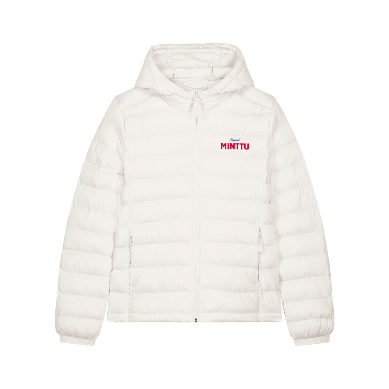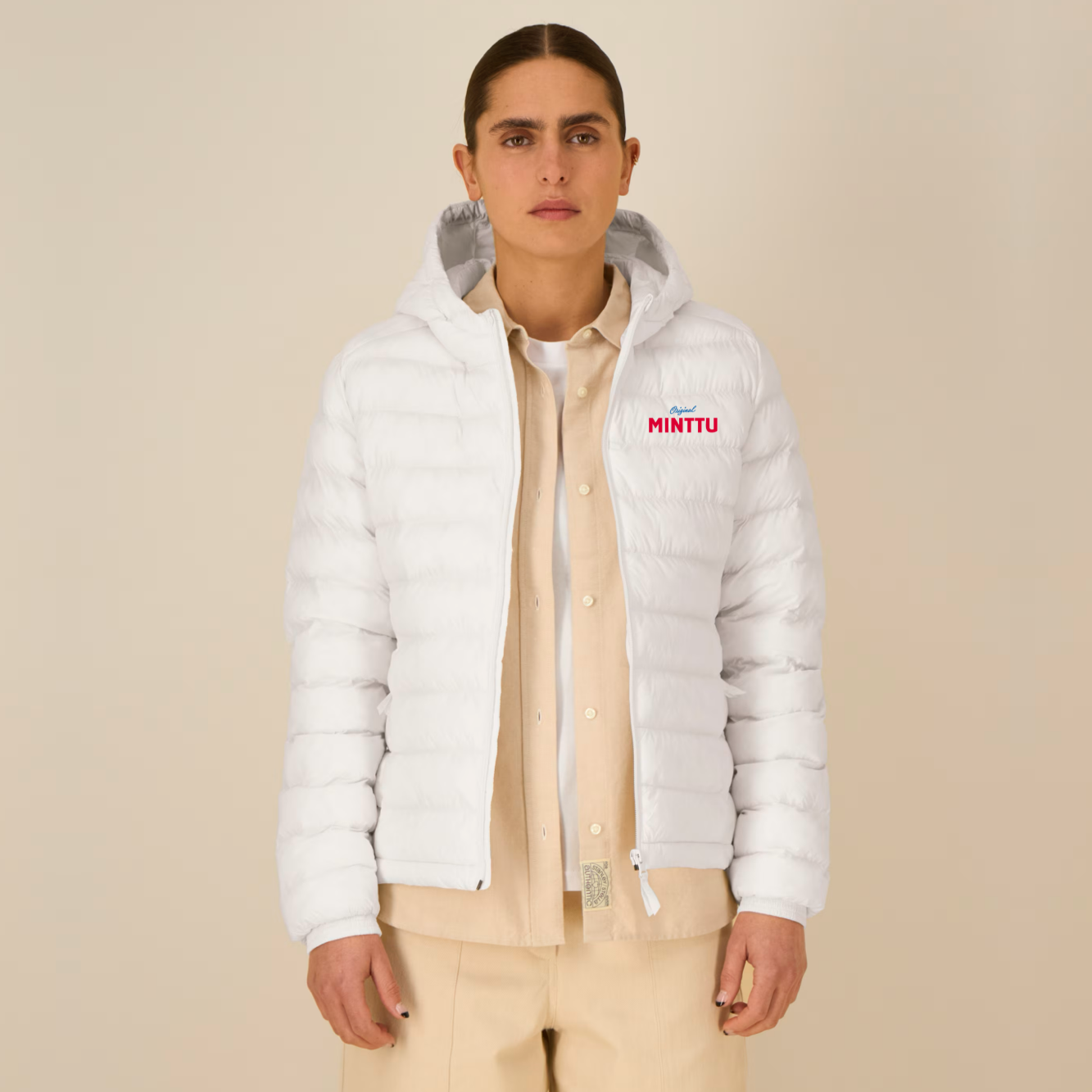 Dunjacka av hög kvalité. 100% återvunnen nylon, vattenavvisande och broderad Minttu logo på bröstet.