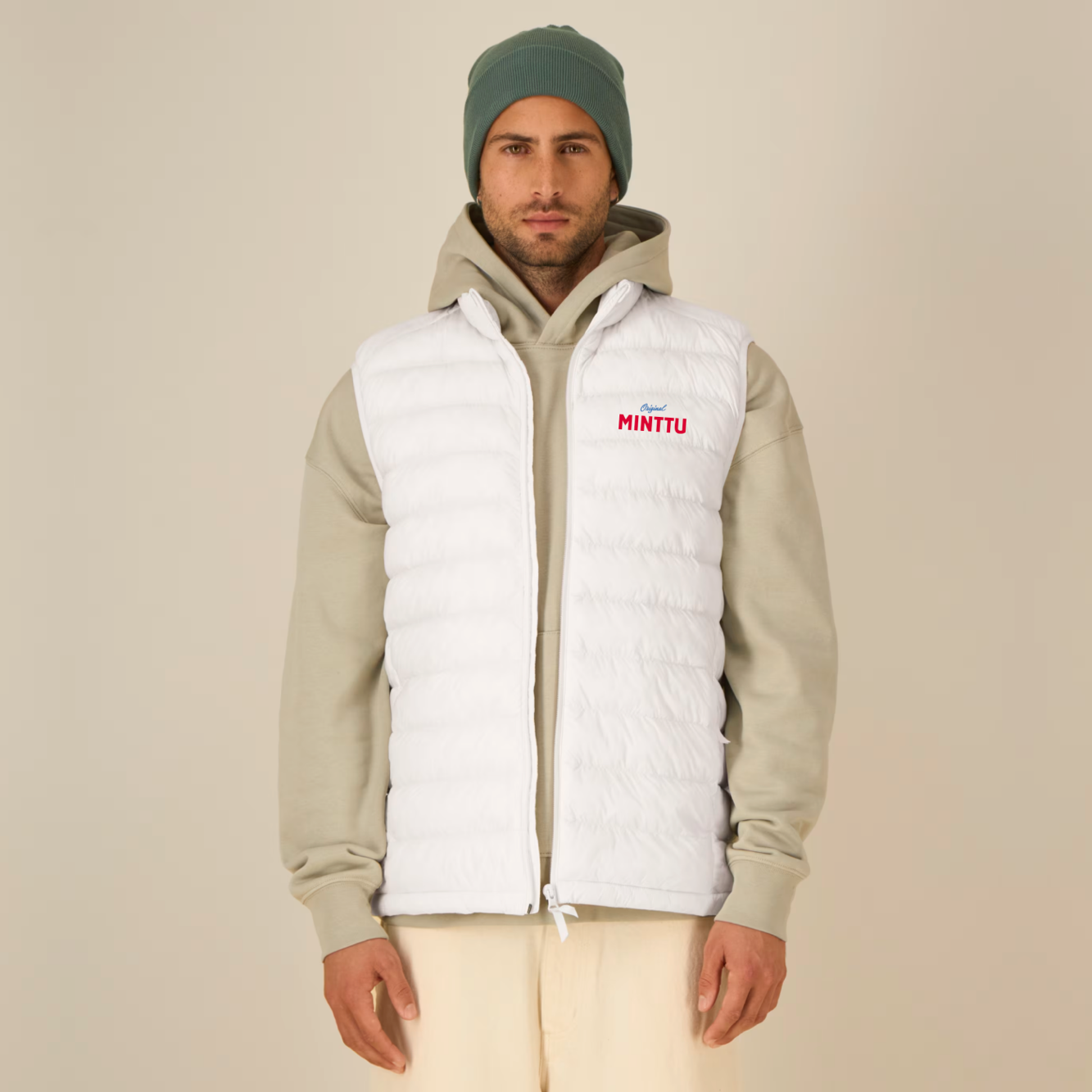Dunväst av hög kvalité. 100% återvunnen nylon, vattenavvisande och broderad Minttu logo på bröstet.